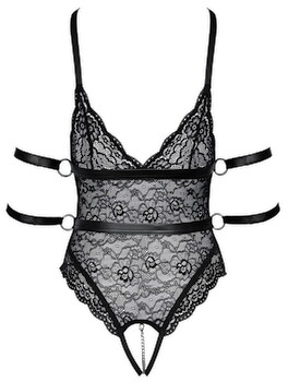 Din partner kommer selvfølgelig heller ikke til, at kunne få nok af dit attraktive udseende. Det behøver han heller ikke. Bodiesne er nemlig ouvert. Takket være slidsen i vaginale område kan bodystockingen bæres under hele kærlighedsakten.