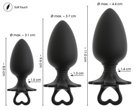- Sort 3-delt analplug-sæt, forskellige størrelser og vægte.
