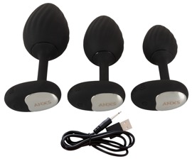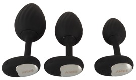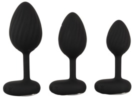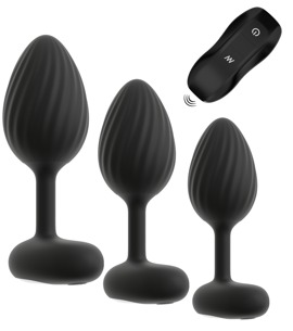 - 3-delt, genopladeligt vibrerende analplug-sæt med fjernbetjening.