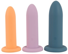 De 3 dildoer i træningssættet inviterer dig og din partner til at lege, stimulere og træne – vaginalt og/eller analt. Med dildoernes forskellige størrelser og vægt kan du nyde en perfekt 3-trins strækningstræning i vagina og/eller anus. Start med den mindste dildo og træn eller øg til den store dildo.
