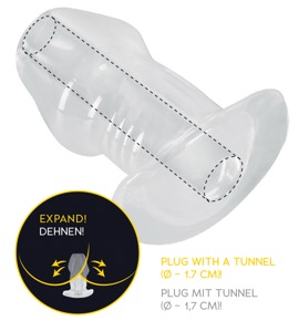 Denne transparente tunnel-analplug tager din bagdørsfornøjelse til det næste niveau! Takket være det hule design kan du ikke kun nyde intens stimulation og dejlig strækning – du får også fascinerende indblik, der gør legen endnu mere spændende. Med smidig hjælp fra glidecreme fører du pluggen forsigtigt ind i din anus. Det superbløde materiale glider af sig selv og smyger sig blidt mod væggene i dit rektum – for maksimal komfort og en sensationel følelse. De stimulerende trin sikrer, at alt sidder sikkert, når det går hedt for sig. Takket være den brede stopper forbliver alt sikkert på plads. Den åbne tunnel giver fri udsigt og endnu flere muligheder: spændende indsprøjtninger eller indføring af legetøj eller fingre – her er alt, hvad der er sjovt!