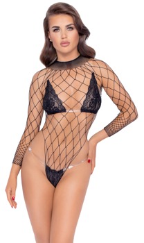 Med denne sorte langærmede netbody trækker du alle register – stilfuld, fræk og farligt sexet!