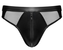 Sprøde sorte trusser fra Svenjoyment i et trendy wetlook med gennemsigtige netindsatser foran. I en uigennemsigtig pose med lynlås. Bløde og elastiske over det hele og med en dækket elastisk linning for maksimal komfort.