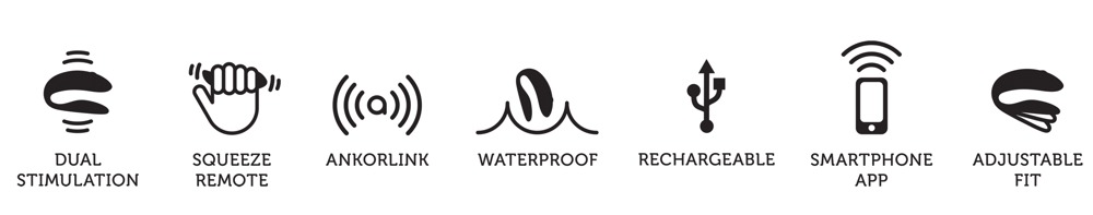 C-formet parvibrator, der forkæler dig med 10 og flere vibrationsmodi. Den er fleksibel og forbliver i positionen efter justering til at tilpasse sig enhver kropsform. Den nye AnkorLink™-teknologi opretter en forbindelse til fjernbetjeningen, som derefter tilsluttes parvibratoren som en signalforstærker. Sådan undgår du problmer med bluetooth, som ofte rapporterer forbindelsesfejl i den menneskelige krop. Fjernbetjeningen har Squeeze Control, som øger vibrationernes intensitet ved at trykke på fjernbetjeningen. Chorus har sensorer, der muliggør kontrol ved håndpålægning i Touch-Sense-Mode. Appen muliggør fjernbetjening over store afstande og oprettelse af personlige vibrationsmodi. En vibrations til musikens rytme er også mulig. Chrous leveres med en diskret opbevaringsboks, hvor vibratoren kan oplades. Inklusive USB-ladekabel til magnetisk opladekasse og batteri (CR2032) til fjernbetjeningen.
