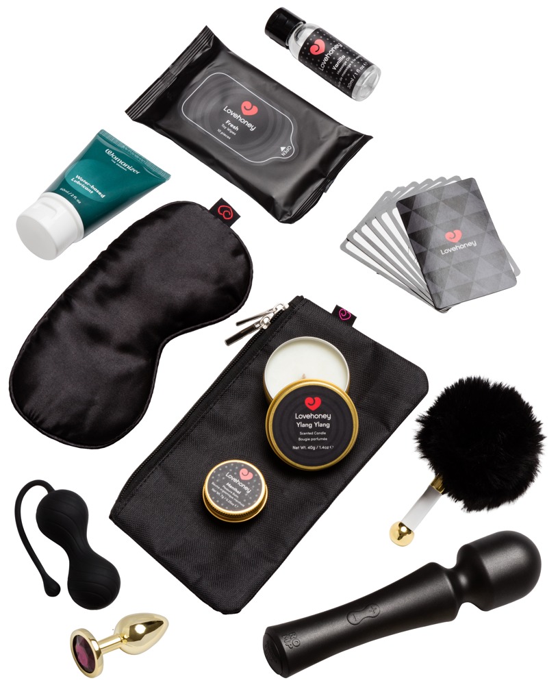 Indeholder: 3 x premium-legetøj, 2 x vibratorer, 6 x legetøj, 3 x anal-legetøj, 3 x drogerivarer, 2 x accessoirer, 5 x soft bondage.