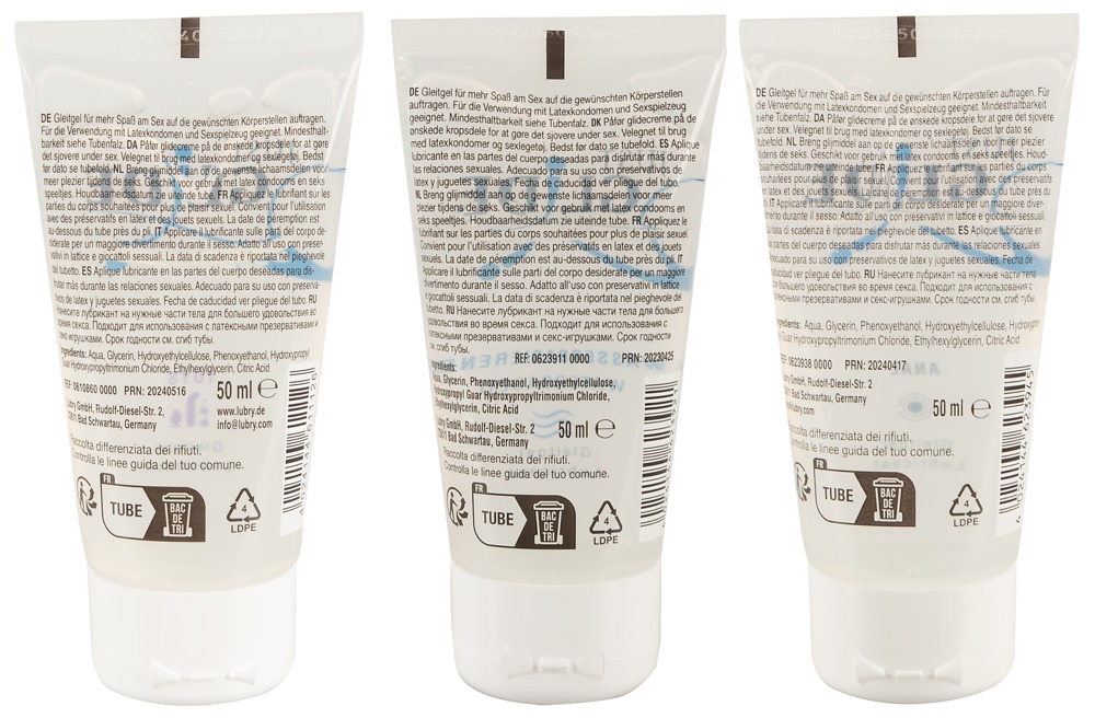 hhv. 50 ml »Waterbased«, »Toylube« og »Anal«.