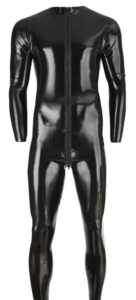 Hudtæt overall med fod og 3-vejs lynlås henover bunden. Et absolut højdepunkt for enhver fetish garderobe.