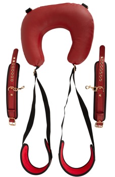 Denne luksuriøse, stilfulde kombinationsmanchet er et rigtigt highlight til din kinky leg med komfort! Gør dig klar til spændende bondagelege og hotte positionslege. Fastgør benene i forførende åbne stillinger, eksperimenter med forskellige vinkler. Nakkepuden sørger for afslappet lænetilbagelæning, mens de polstrede løkker holder dine lår præcis, som du vil have det. Nyd den optimale komfortable støtte i usædvanlige stillinger (f.eks. skovl). Soveværelsesakrobatik gjort let!