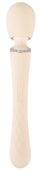 Med denne elegante massagestav kan du nyde intime lystmassager på og i kroppen alene eller sammen med din partner. Massagestaven kan bruges på begge sider: Den ene ende har et bevægeligt massagehoved, som du kan bruge til helkropsmassage eller som en lay-on vibrator til præcise intime massage. Det let riflede håndtag fungerer også som vibrator og kan indføres analt eller vaginalt. Du styrer vibrationerne bekvemt midt på legetøjets håndtag. For mere smidighed skal du blot bruge et vandbaseret glidecreme.