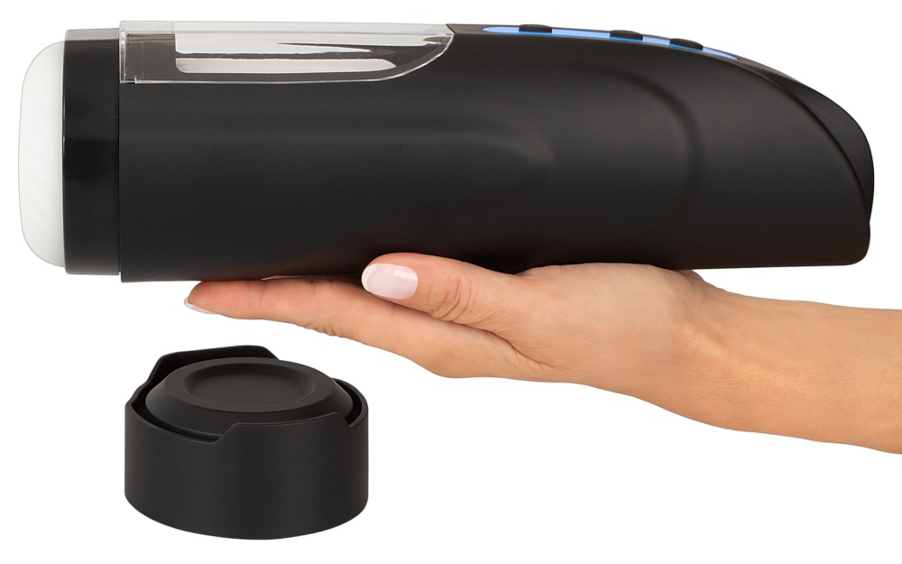 Med Masturbator 09 kan du nyde en fuldautomatisk, intens penismassage, når den er bedst! Glid ind gennem den bløde, smalle neutrale åbning og ind i det silkebløde indre hylster. Utallige stimulerende strukturer smyger sig masserende mod din penis. Ved et tryk på en knap begynder de at dreje og bevæge sig op og ned. Et handjob kan ikke være nemmere! Og den spændende stønnefunktion, som du kan lytte til diskret via de medfølgende hovedtelefoner, får dig virkelig i gang. Bare læn dig tilbage og lad dig forkæle til det yderste!