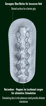 Praktisk, gennemsigtig Pocket Masturbator Speed af Stroker med en spændende struktur af riller og nopper indeni. Den elastiske masturbator har også en noppet overflade på ydersiden, så den ikke glider væk selv med vildere op- og ned bevægelser.