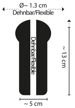 Samlet længde 13 cm, Ø 1,3 cm (strækbar). TPE.