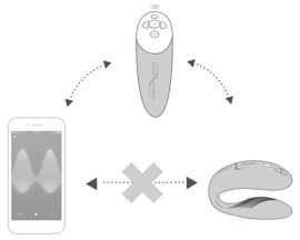 - Kan styres via We-Vibe-appen: Vibrationer bekvemt via smartphone – også fra din partner, uanset hvor i verden I befinder jer! Ekstra indstillinger og synkronisering med musik er mulig.