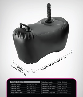 Med den oppustelige Body Dock sexpude løfter du dit kærlighedsspil til et helt nyt niveau. Det er den patenterede sexlegetøjsholder, der gør det muligt: Du skal bare fastgøre den medfølgende dildo eller dit yndlingslegetøj med sugekop, og så er du klar! Uanset om det er vilde ture eller sensuelle lege – puden giver dig altid det, du har brug for, med sin perfekte størrelse og fjedrende støtte. Det stabile håndtag sikrer, at du bevarer kontrollen selv under de hotte bevægelser – for endnu mere lidenskab og power.