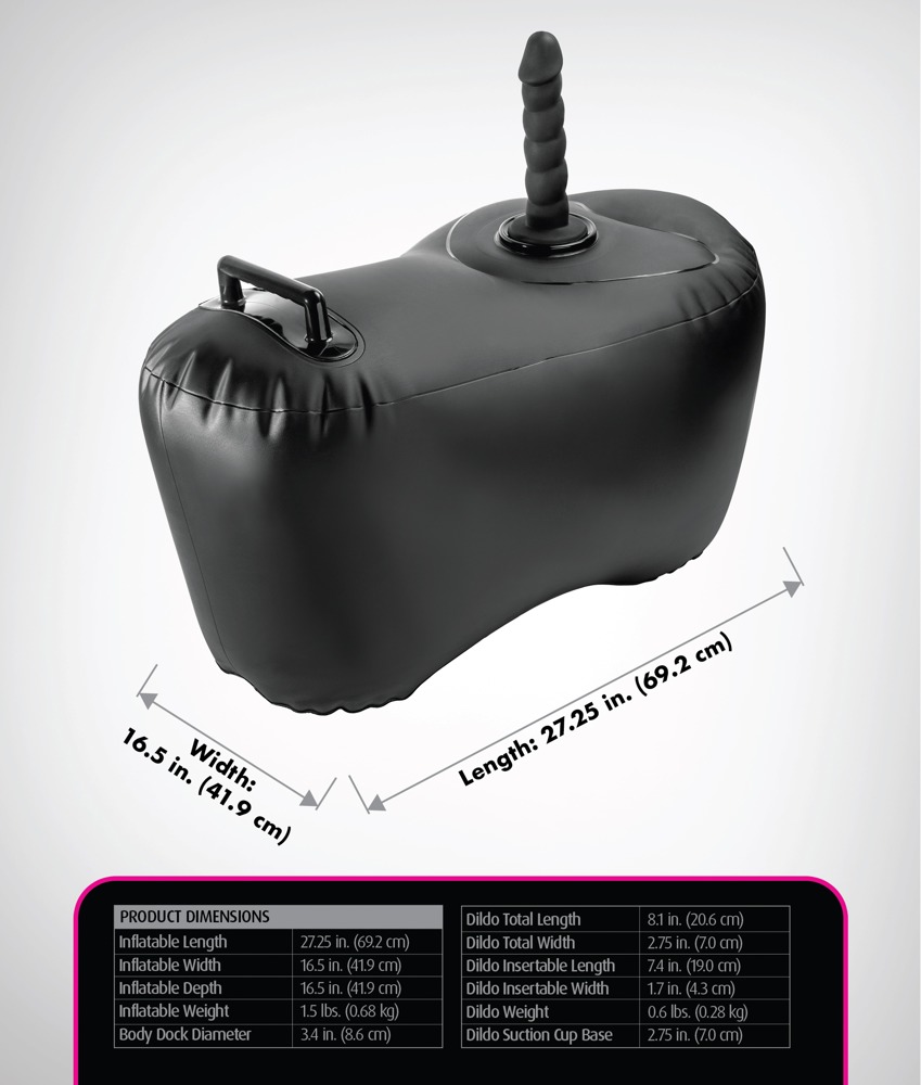 - Leveringsomfang: 1 x Body Dock Inflatable Love Seat fra Fetish Fantasy Series inklusive Dillio Platinum Dildo.