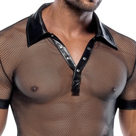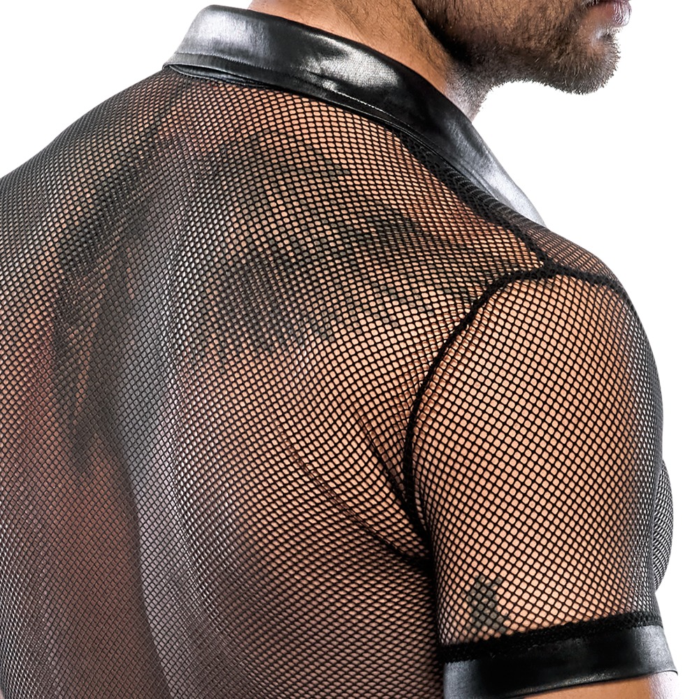 Præsenter dig selv i denne maskuline skjorte med en polokrave og en kort trykknaplås foran, og kvinderne vil elske dig - ikke mindst takket være den attraktive materialeblanding af mesh og wetlook. Sort.