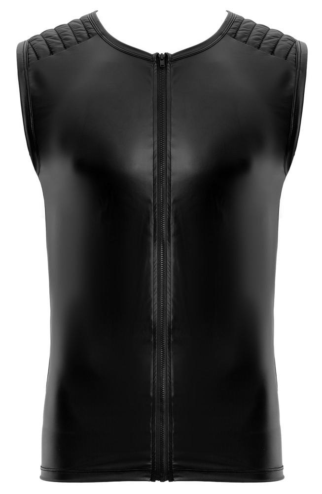 Få det cool look med denne ærmeløse skjorte! Den elegante sorte matte look med de quiltede skuldre sikrer dig et markant look og tiltrækker opmærksomhed. Denne skjorte er blød og elastisk og tilbyder dig højeste bærekomfort. Den gennemgående lynlås foran giver ikke kun skjorten et moderne twist. Den er også ideel til alle, der vil leve deres stil uden kompromiser. Vis, hvad du har!