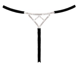- Snit og materiale: Luksuriøs, skridtfri g-string i bløde, sorte stretchbånd med sølvfarvede detaljer. For- og bagside med rhinsten. Justerbare stretchbånd i siden ved linningen. 90 % polyamid, 10 % elastan.