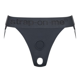 Med strap-on-jock kan du hurtigt og nemt udstyre dig med en dildo eller vibrator til dine stødglæder. Foran sætter du dit ønskede legetøj i den forstærkede åbning. Derefter tager du g-strengen på og strammer linningen og jock-stropperne, så de passer til dig – så sidder alt fast og sikkert. Efter legen kan jocken hurtigt tages af igen. Tip: Brug et vandbaseret glidecreme for at gøre din stødglæde mere smidig.
