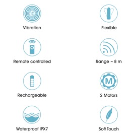 - Fleksibel: Dobbeltvibrator tilpasser sig optimalt til kroppen(e), leg og bevægelser.