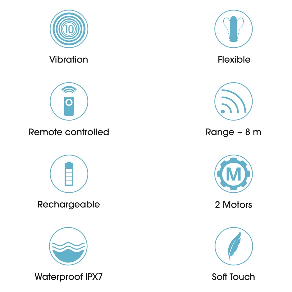 - Praktisk fjernbetjening: Så kan vibrationerne fra begge partner styres bekvemt (rækkevidde 8 m).