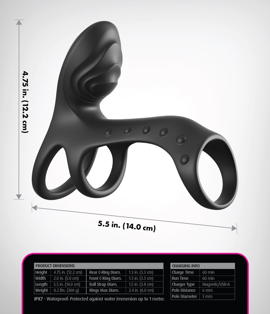 Takket være den bløde, elastiske silikone er manchetten og ringene nemme at sætte på og passer perfekt. Den høje fleksibilitet sikrer, at de kraftige dobbeltvibrationer opleves intensivt ved hver bevægelse. Maksimal komfort og nydelse!