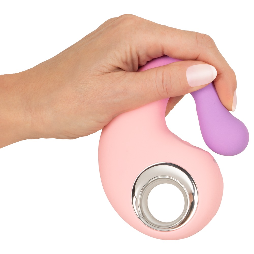 Før den fleksible skaft ind i vagina, så klitorispulsatoren berører din hotspot. Brug vandbaseret glidecreme for endnu mere smidighed. Med det praktiske ringhåndtag kan du nu nemt tænde for vibrationerne i vaginaen og klitorisimpulserne ved at trykke på en knap og styre dem til dine ønskede indstillinger. De to funktioner kan styres separat. Så kan du nemt sammensætte dit helt personlige forkælelsesprogram til udvendig og indvendig brug. Takket være sin smalle form med sikkert greb kan du også bruge vibratoren til sensuelle anale eventyr. Prøv det!