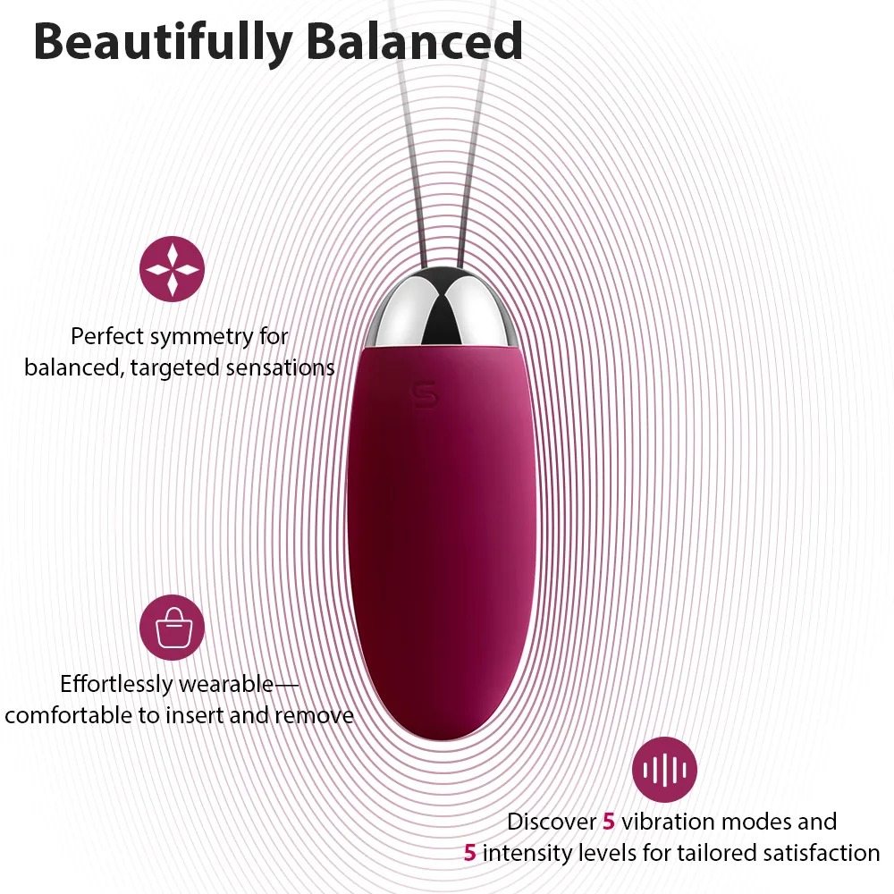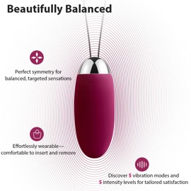 Genopladelig, vandtæt vibroæg med en silkeblød Soft Touch tekstur inklusive retursnor. Med 5 lydløse vibrationsmodi i 5 forskellige intensiteter. SVAKOM Intelligent Mode efterligner vibrationsfrekvenserne fra samlejen til orgasme. Styres med et tryk på en knap eller med den medfølgende fjernbetjening. Inkluderer opbevaringspose, USB-ladekabel og batterier til fjernbetjeningen.